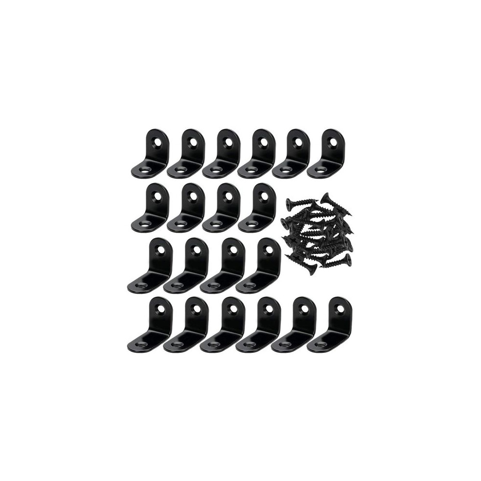 40PCS Stainless Steel L Brackets, 90 Degree Corner Braces for Furniture and Shelves, Black 20mm with Screws