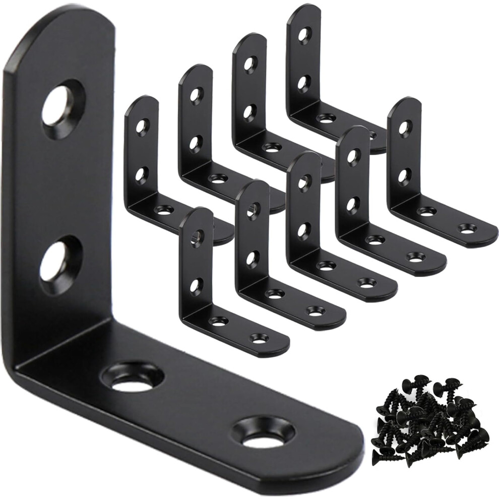 2" L Brackets 10-Pack, 90 Black Corner Braces for Wood Furniture, Shelves, Cabinets & Wall Mounting â Compatible with DIY Home Improvement