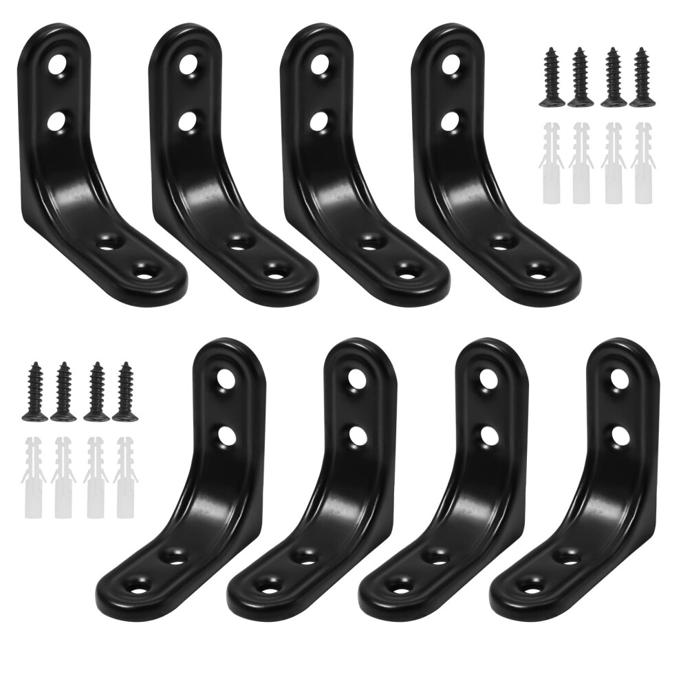 8PCS Stainless Steel L Brackets, Black Right Angle Braces for Shelves, Furniture, Cabinet, Chair with Screws