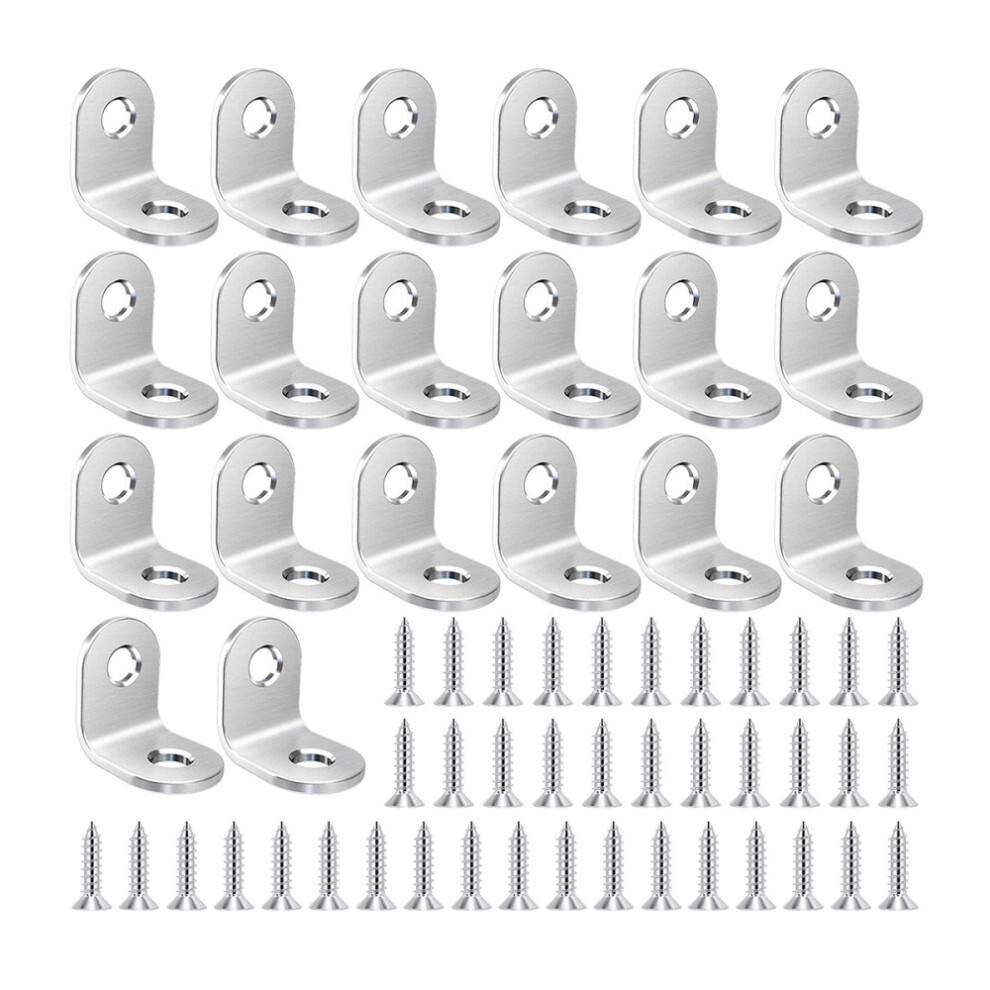 SUPVOX 20 Sets L-shaped Stainless Steel Corner Brackets 90° Flat Angle Braces with Screws for Furniture Shelves Cabinets, Heavy Duty Metal L Shape Shelf Supports for Home Office Use