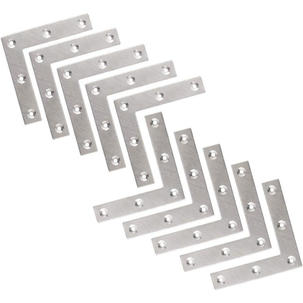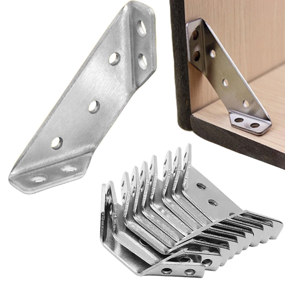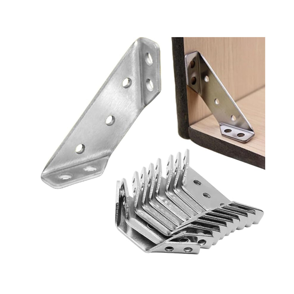 10 Pack 60mm Stainless Steel Corner Brackets for Secure Joint Support, Heavy Duty Angle Braces for Shelves and Cabinets