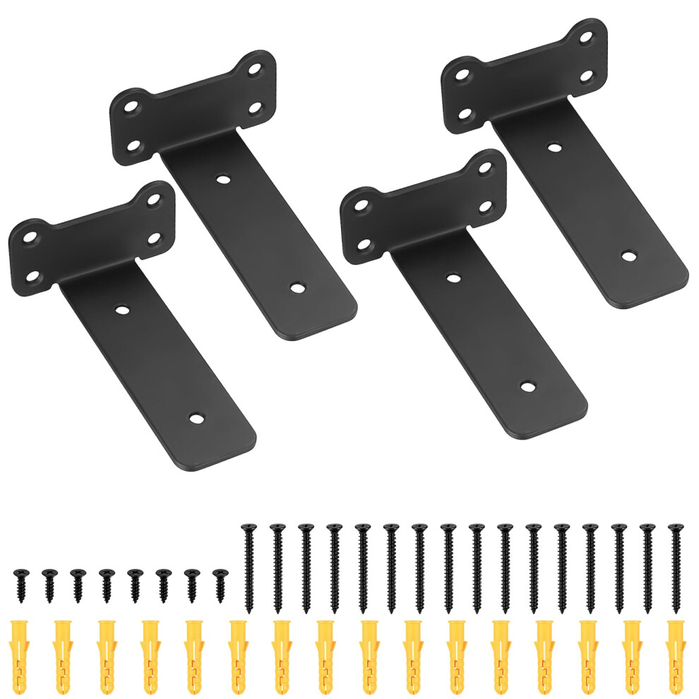 4 Pcs Heavy Duty Floating Shelf Brackets for Shelves L Shaped Support Brackets Wall Mounted, Metal Scaffold Board Shelf L Braces (Black, 5 inch cat E