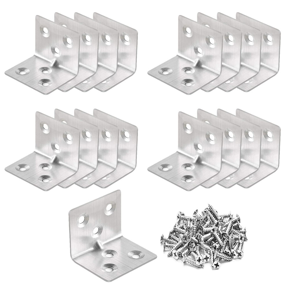 20pcs Stainless Steel Corner Brackets Right Angle Braces for Furniture Shelves and Cabinets