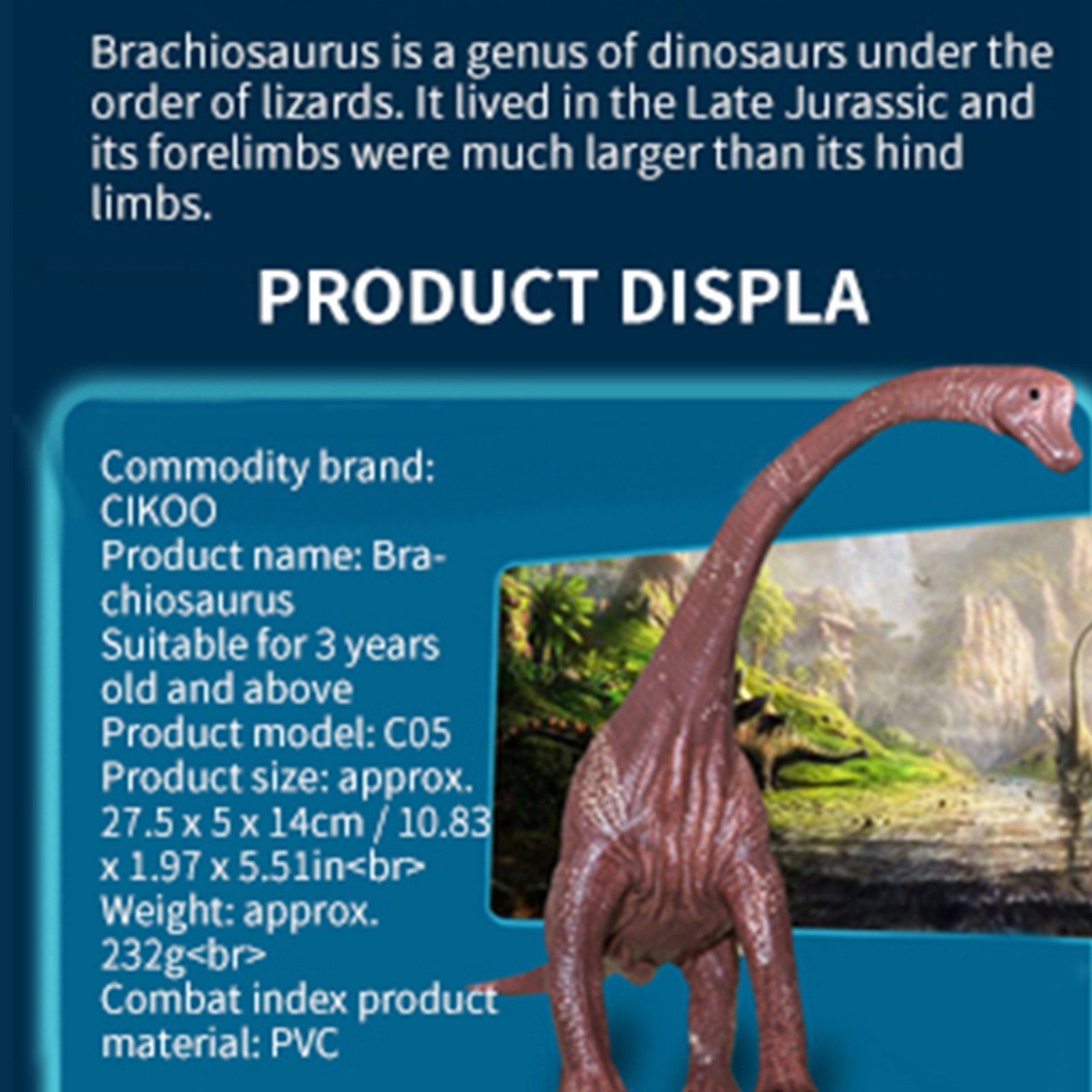 PVC Brachiosaurus Dinosaur Toy Model Kids Children Gift Home Display Part.