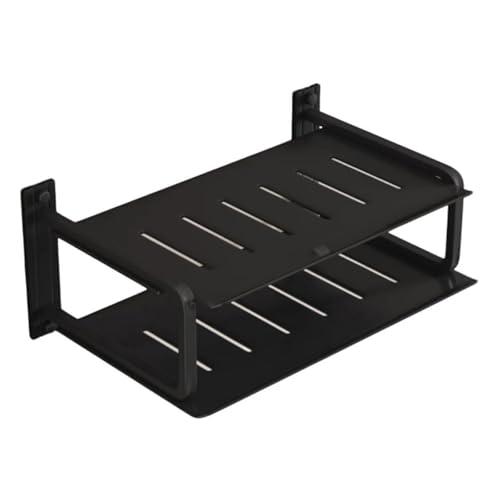 Wall Mounted Projector Shelf Metal Router Rack DVD Player Bracket, Floating Shelves For TV Components Such As Cable Box/Sky Box/Media Boxes/Blu-Ray Players(Black,Double-storey)