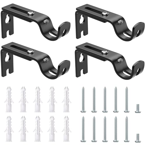 Mobestech 4pcs Rod Holder Curtain Rod Brackets Support Wall Mount Curtain Pole Rack Holder Hooks for Hanging Window Hardware