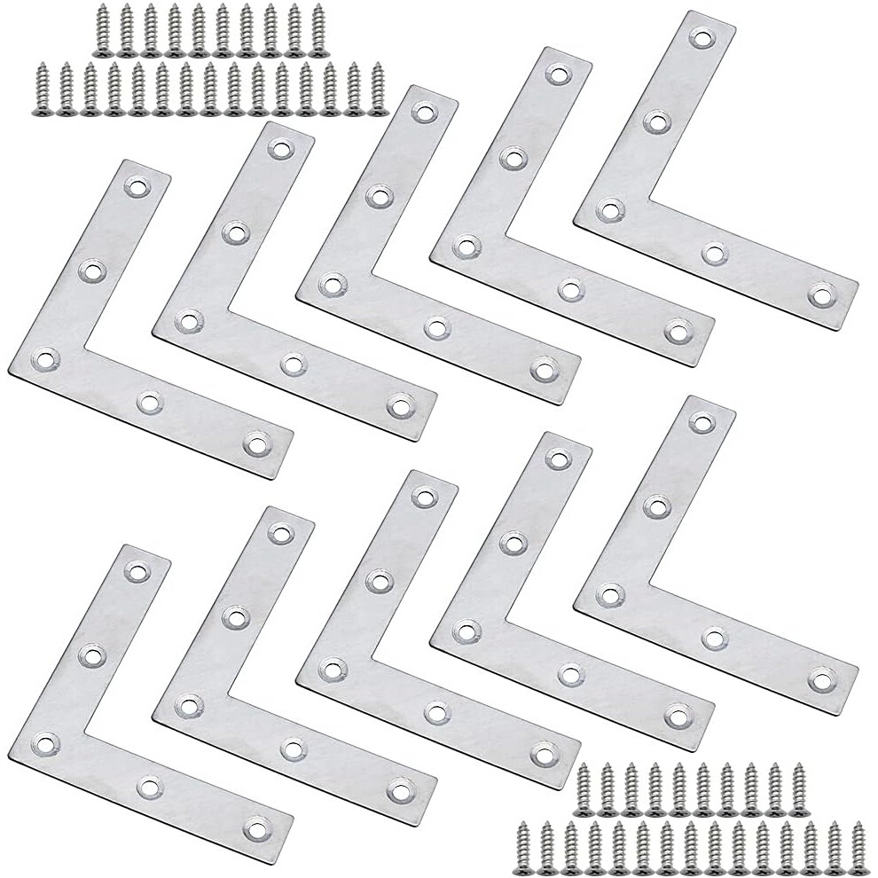 L-Type Corner Brace For Furniture Repair, Heavy Duty Stainless Steel Angle Brackets With Countersunk Holes For Woodworking And Diy Projects (10 Pack)