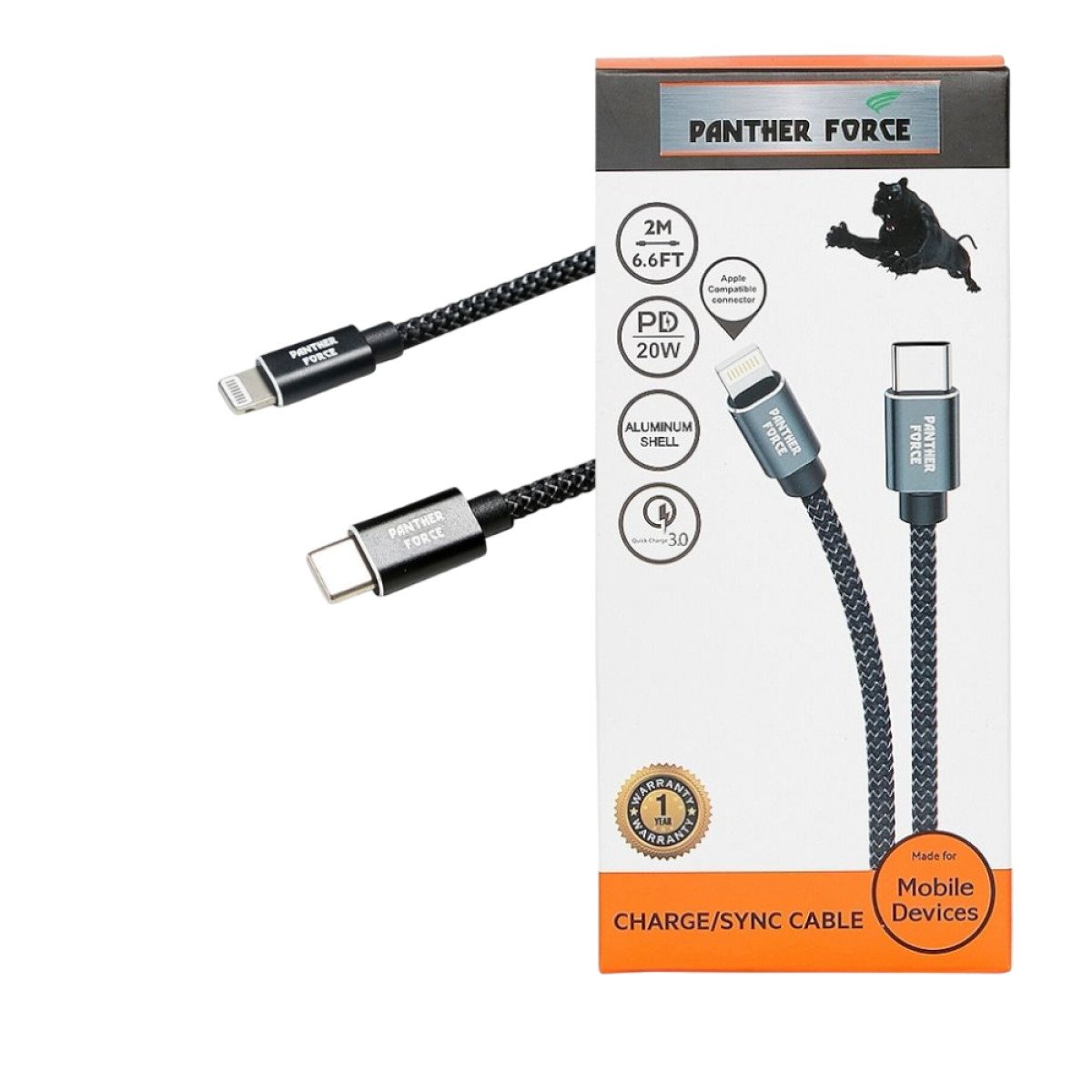 SILVERLABEL Braided USB Type-C to Lightning Cable - 2 m, Black, Black