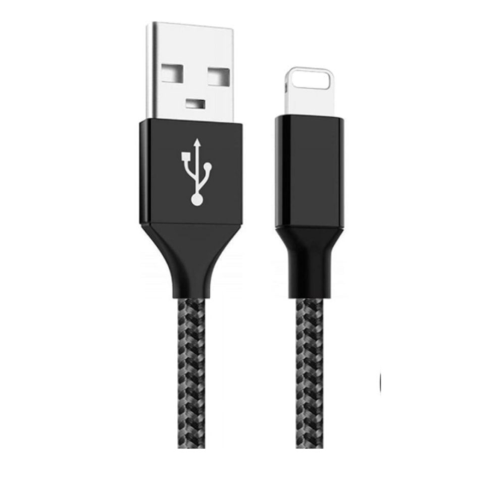 2m Durable Braided Metallic Lightning Cable Quick Charge 3.0 Black