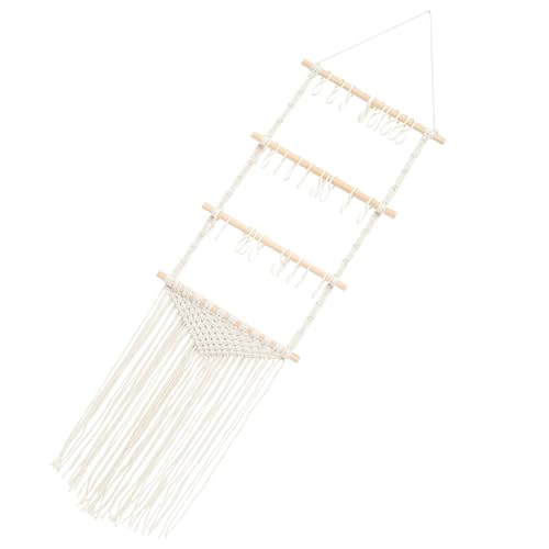HEALSOPTHY Wooden Hairpin Holder Wall Hanging Organizer with Tassel Braiding Rack for Hair Clips and Bows Storage Space-saving Headdress Storage Rack for Decor