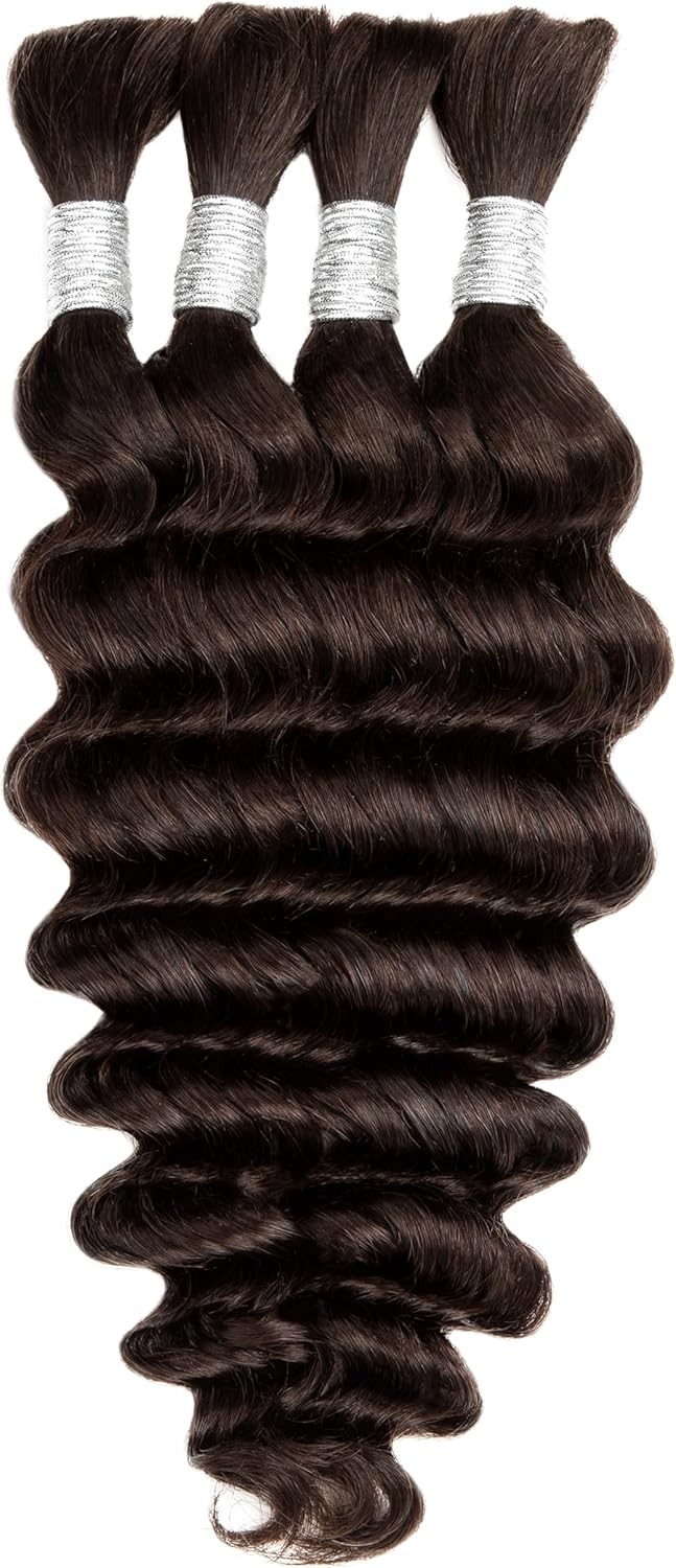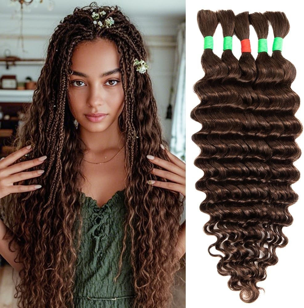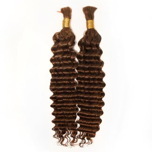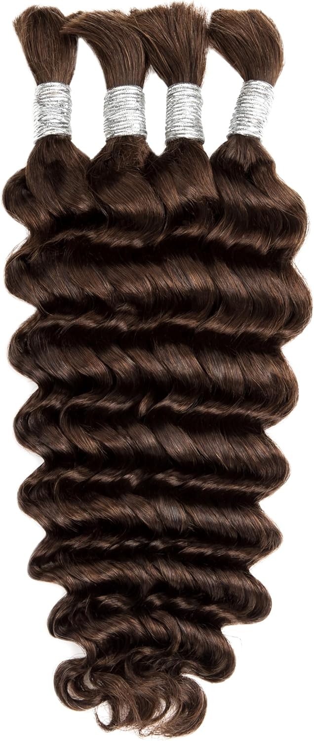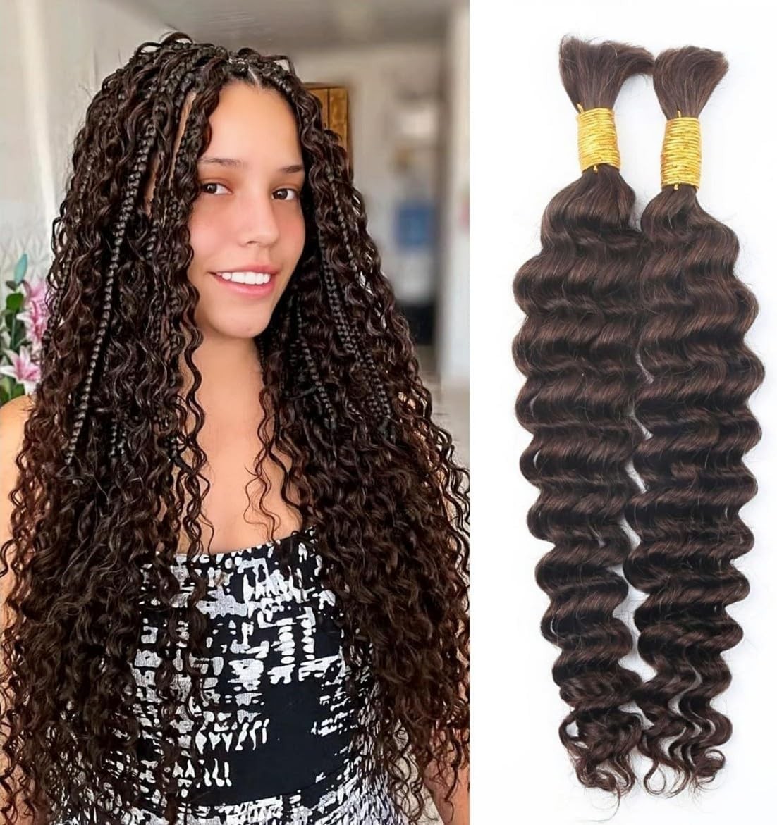 #4 Chocolate Brown Color Human Braiding Hair For Boho Deep Wave No Weft 50g/Bun