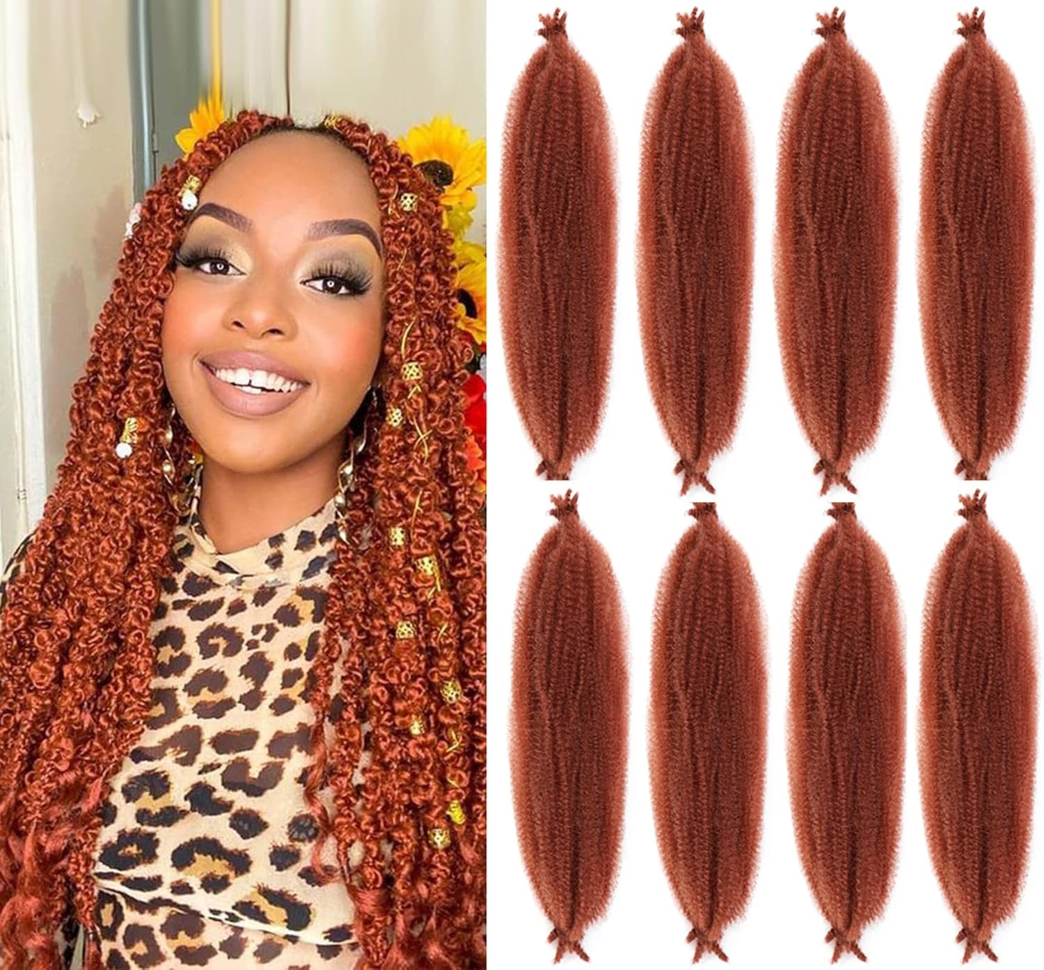 Pre Stretched Braiding Hair - 20 Inch Crochet Hair Extensions for Braiding 1B/30/27 Soft Yaki Texture 8 Packs Crochet Braids Hair Extensions(1B/30/27)