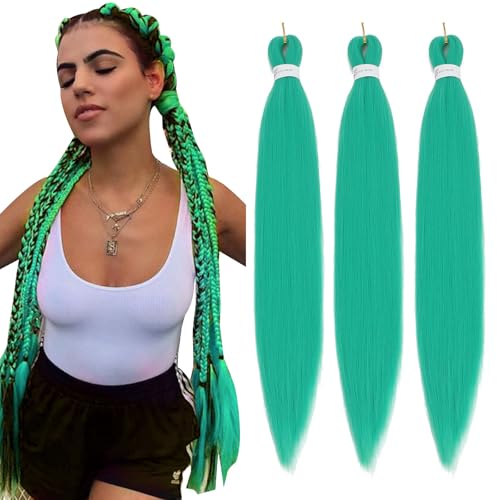Pre-Stretched Braiding Hair - 30 Inch Peacock Green Soft Yaki Texture 3 Packs Crochet Hair Extensions for Black Women