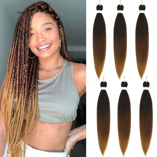 Pre Stretched Braiding Hair - 26 Inch Crochet Hair Extensions for Braiding 1B/30/27 Soft Yaki Texture 6Packs Crochet Braids Hair Extensions(1B/30/27)