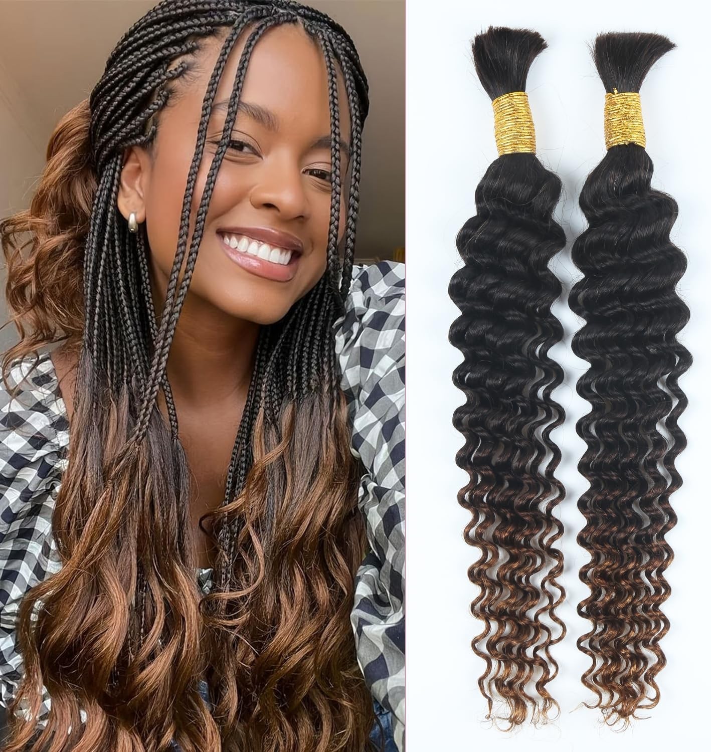 Human Braiding Hair for Boho Braids Highlight Deep Wave Bulk Human Hair for Bra