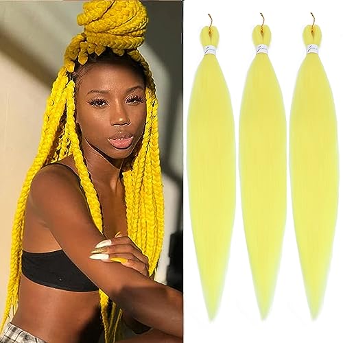 Pre Stretched Braiding Hair - 26 Inch Soft Yaki Texture 3 Packs Crochet Hair Extensions Braids for Black Women (26 Inch(3Packs), Yellow)