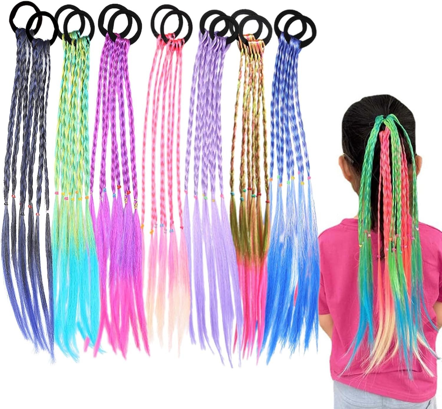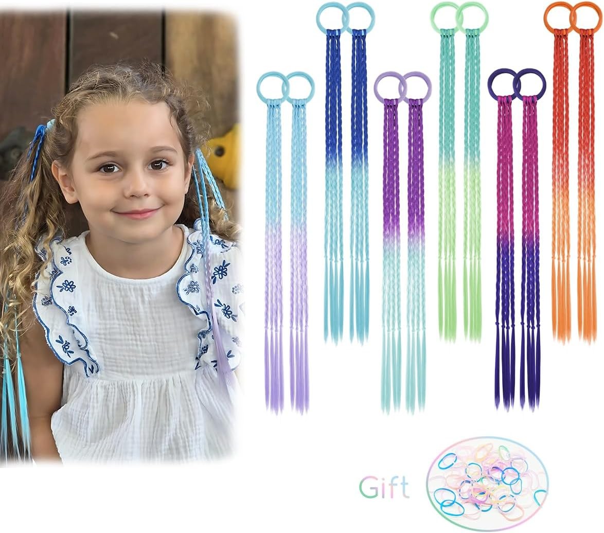 Kids Coloured Hair Extensions - 6Pcs Hair Braiding Set for Girls' Hair Accessori
