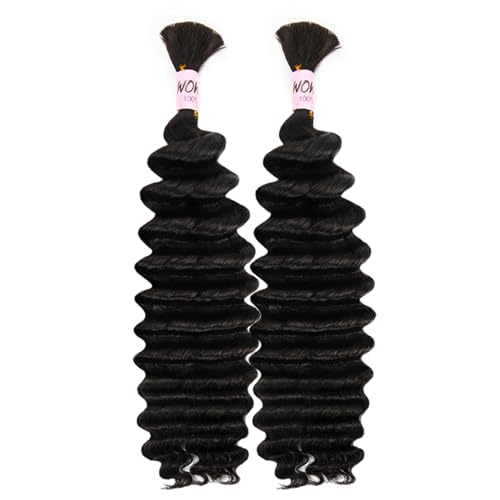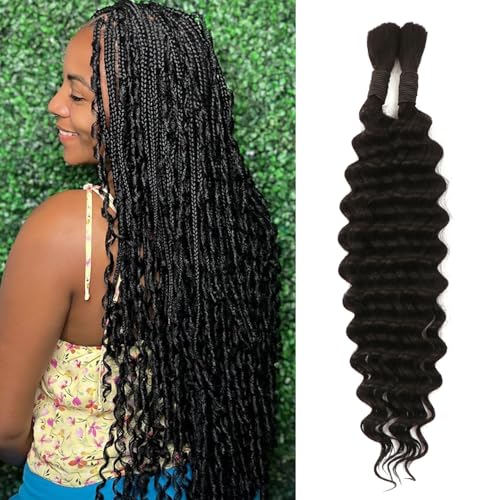 WOWANGEL Boho Braids Human Hair Extensions, Knotless Boho Braiding Hair for Curly Bohemian Styles,22 Inch Deep Wave Human Hair Bundles (100g),Natural Black(1B#)