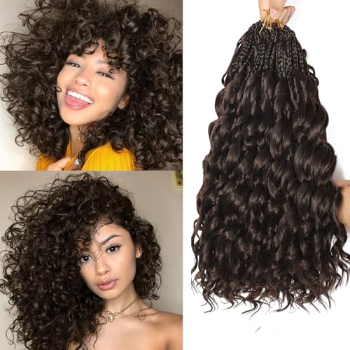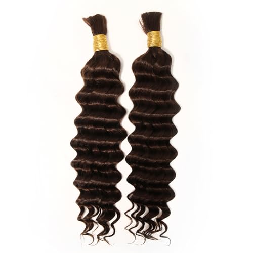 WOWANGEL Boho Braids Human Hair Extensions, Knotless Boho Braiding Hair for Curly Bohemian Styles,20 Inch Deep Wave Human Hair Bundles (100g),Dark Brown(4#)