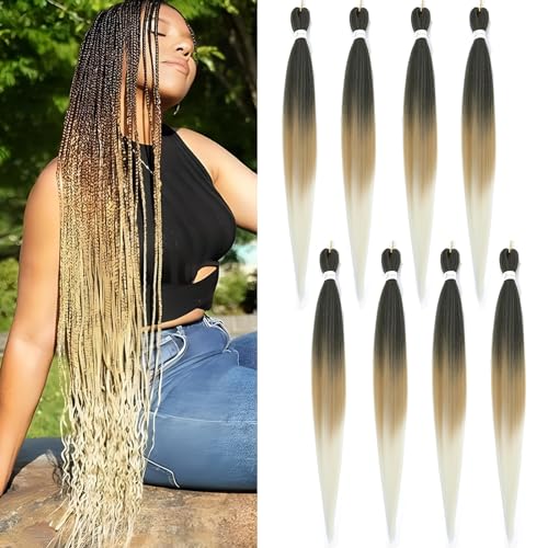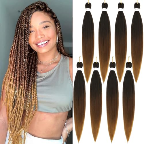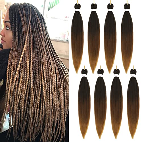 30 Inch Pre Stretched Braiding Hair -8 Packs Braiding Hair 1B/30/27 Crochet Braids Hair Extensions for Braiding