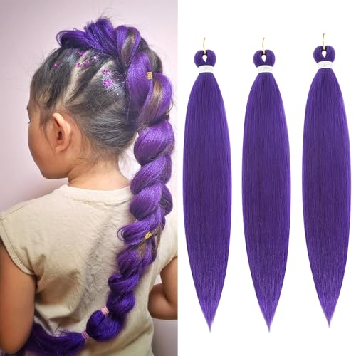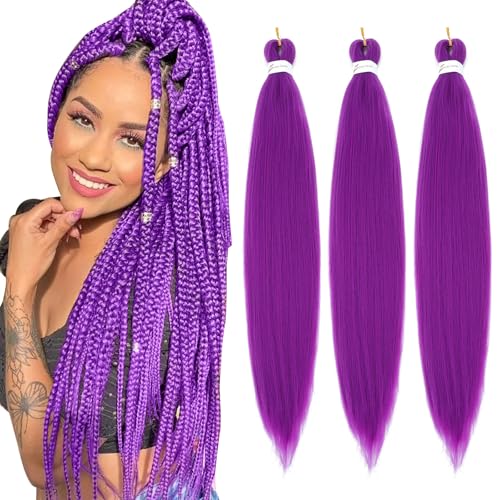 Pre Stretched Braiding Hair - 26 Inch Purple Soft Yaki Texture 3 Packs Crochet Hair Extensions for Black Women