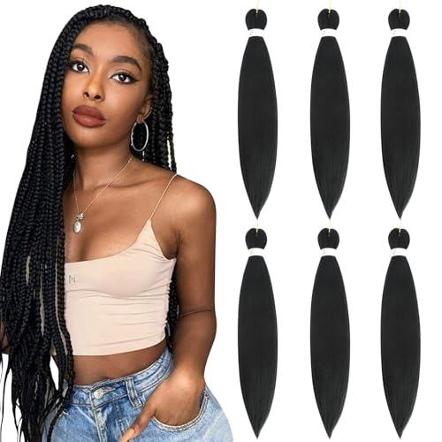 Pre Stretched Braiding Hair - 30 Inch Soft Yaki Texture 6 Packs Crochet Hair Extensions Braids for Black Women (30 Inch(6Packs), 1B)