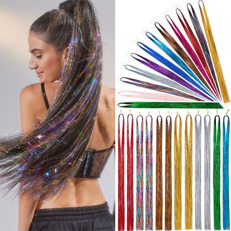 12 Mix Colors 2400 Strands Hair Extension Tinsel Glitter Braiding Hair for Women