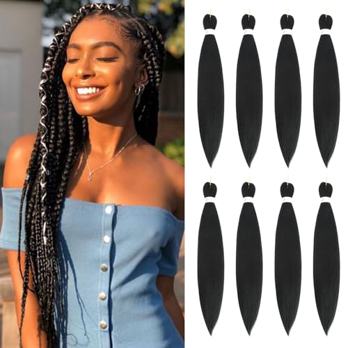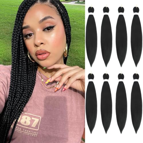 Braiding Hair 22 Inch 8 Packs Braiding Hair Pre Stretched Braiding Hair For Twist Or Box Braids Pre Stretched Braiding Hair For Crochet Braids Hot Water Setting Soft Yaki Texture(22Inch,1B)