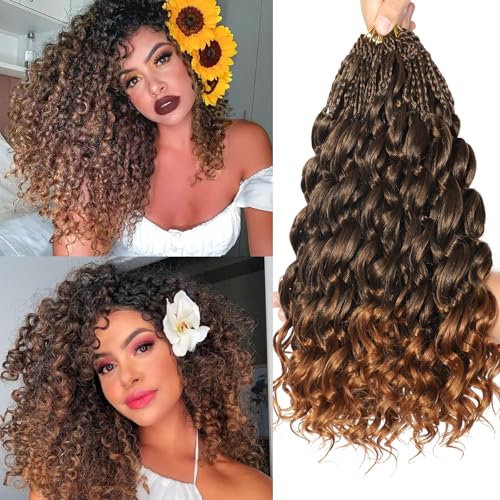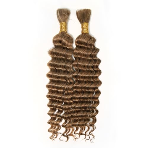 WOWANGEL Boho Braids Human Hair Extensions, Knotless Boho Braiding Hair for Curly Bohemian Styles,18 Inch Deep Wave Human Hair Bundles (100g),Auburn Brown(30#)
