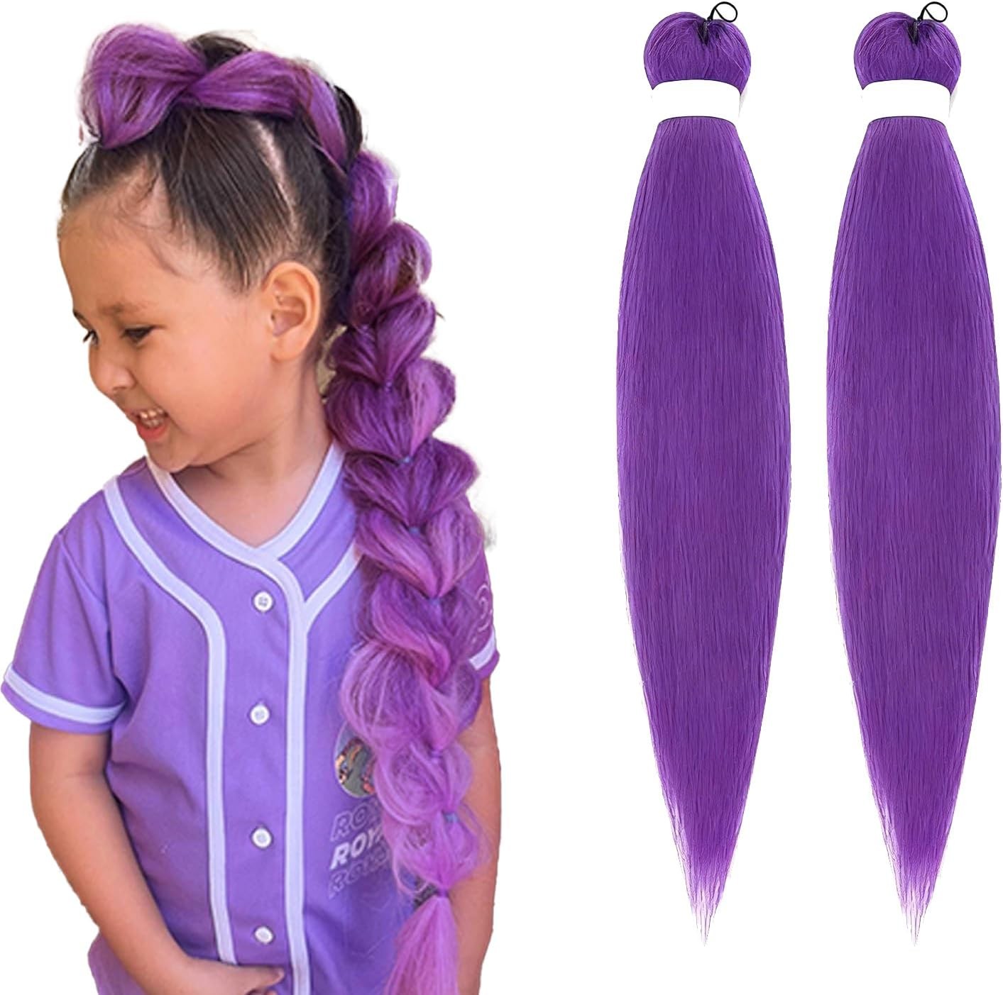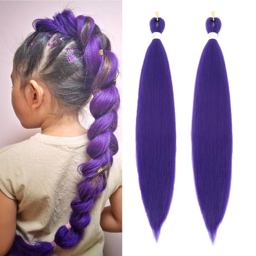 2 PCS 26 Inch Purple Hair For Braiding Hair, Purple Hair Extensions Pre Stretch