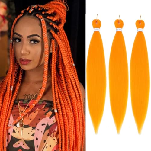 Pre-Stretched Braiding Hair - 26 Inch Orange Soft Yaki Texture 3 Packs Crochet Hair Extensions for Black Women (26 Inch, 3 Packs)