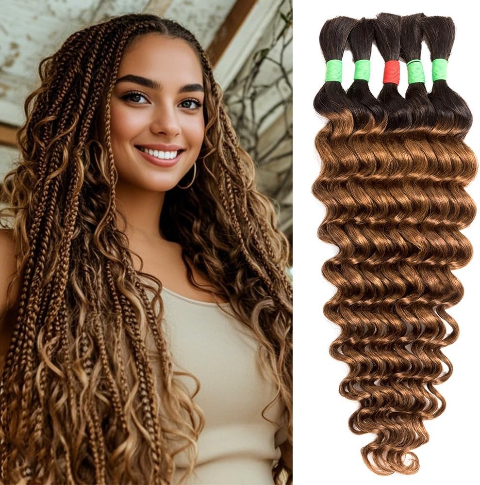 Ombre Brown Human Braiding Hair for Boho Braids 22 Inch 100g Deep Wave Bulk Boh