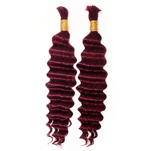Human Braiding Hair for Boho Braids Burgundy Deep Wave Bulk Human Hair for Brai