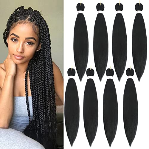 Pre Stretched Braiding Hair - 26 Inch Soft Yaki Texture 8 Packs Crochet Hair Extensions Braids for Black Women (26 Inch, 8 Packs, 1B)