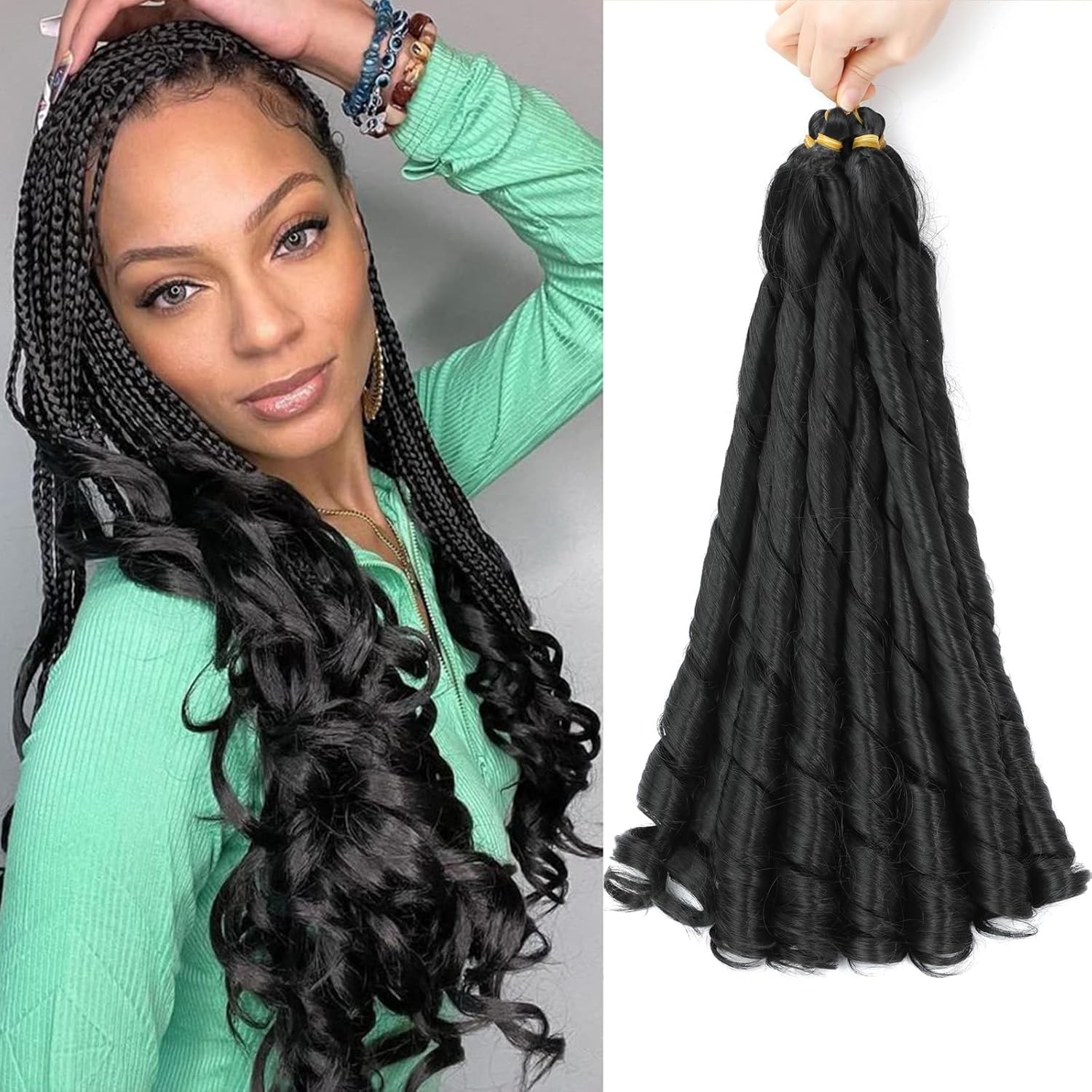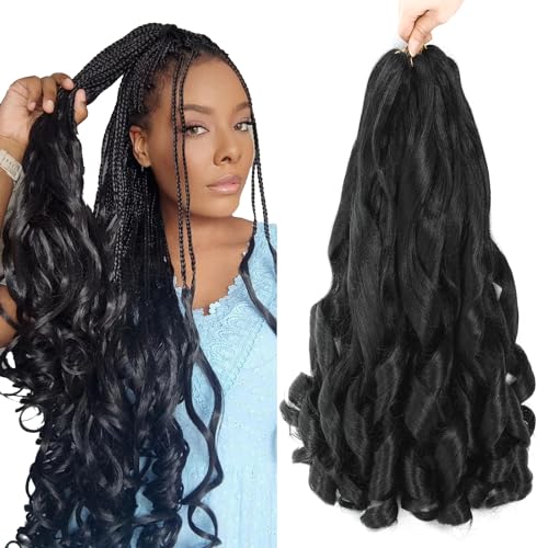 7 Packs French Curl Braiding Hair - 18 Inch Curly Braiding Hair 1B French Curls Braiding Hair Extensions for Black Women (18 Inch(7Packs), 1B)
