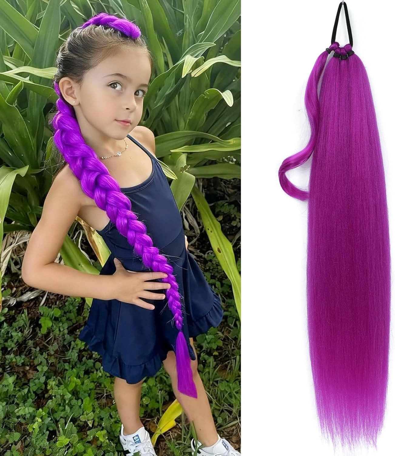 Purple Hair Extensions, Pre-Braids purple Braiding Hair for Cosplay Halloween S