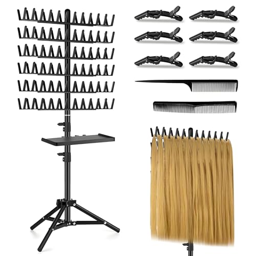 ELUBLU Hair braiding stand - Height Adjustable Braiding Hair Rack, 144 hooks on both sides, Removable tray, Hair Braiding Separator Stand for Hair Salon Home Traveling (Black)