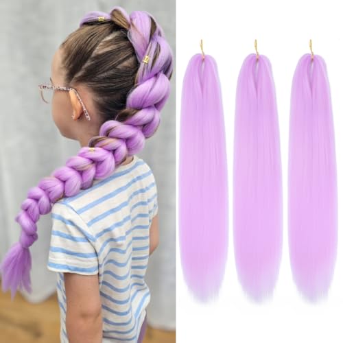 Purple Hair Extensions Pre Stretched Braiding Hair - 26 Inch Purple Hair For Braiding Hair Soft Yaki Texture 3 Packs Crochet Braids Hair Extensions for Black Women (Lavender Purple)