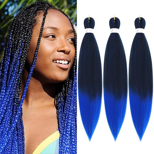 Braiding Hair-26 Inch Pre Stretched Braiding Hair 1B/Blue Soft Yaki Texture 3 Packs Crochet Hair Extensions Braids for Black Women (1B/Blue)