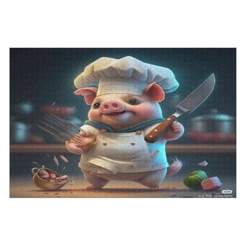 Cute Pig 1000 Pieces Wooden Jigsaw Puzzle for Adults Puzzles Brain Exercise Challenge High Difficulty Game for Kids 78×53cm