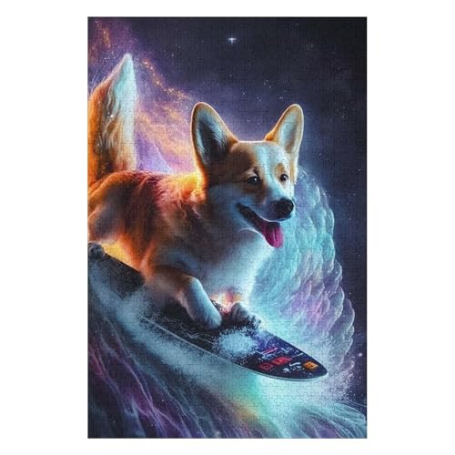Jigsaw Puzzles for Teenagerss 75x50cm/1000pcs Amazing Dog Surfing Cosmic Teenagers Puzzles Brain Teaser Game Difficult Hard Help The Brain Exercise 75x50cm/1000pcs