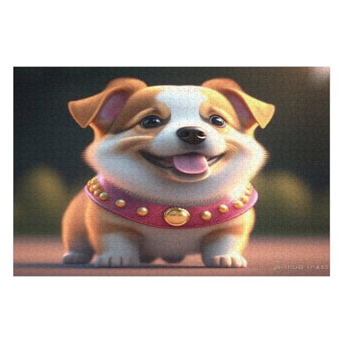 Cute Dog 1000 Pieces Wooden Jigsaw Puzzle for Adults Puzzles Brain Exercise Challenge High Difficulty Game for Kids (75×50cm)