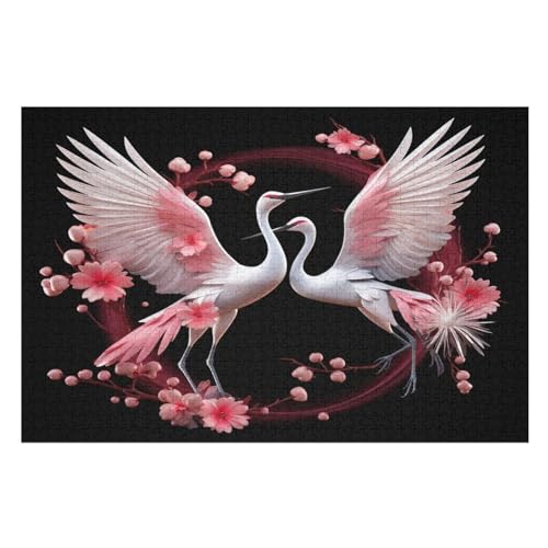 White Crane 1000 Pieces Wooden Jigsaw Puzzle for Adults Puzzles Brain Exercise Challenge High Difficulty Game for Kids (75×50cm)