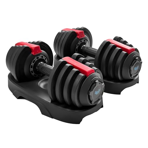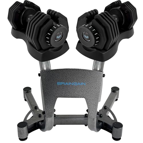 BRAINGAIN 15-in-1 Adjustable Dumbbells Set 24kg Pair | Space-Saving Adjustable Weights for Home Gym Workouts | 15 Dumbbells in One | Smart Click Technology | Durable Performance (24kg Pair)