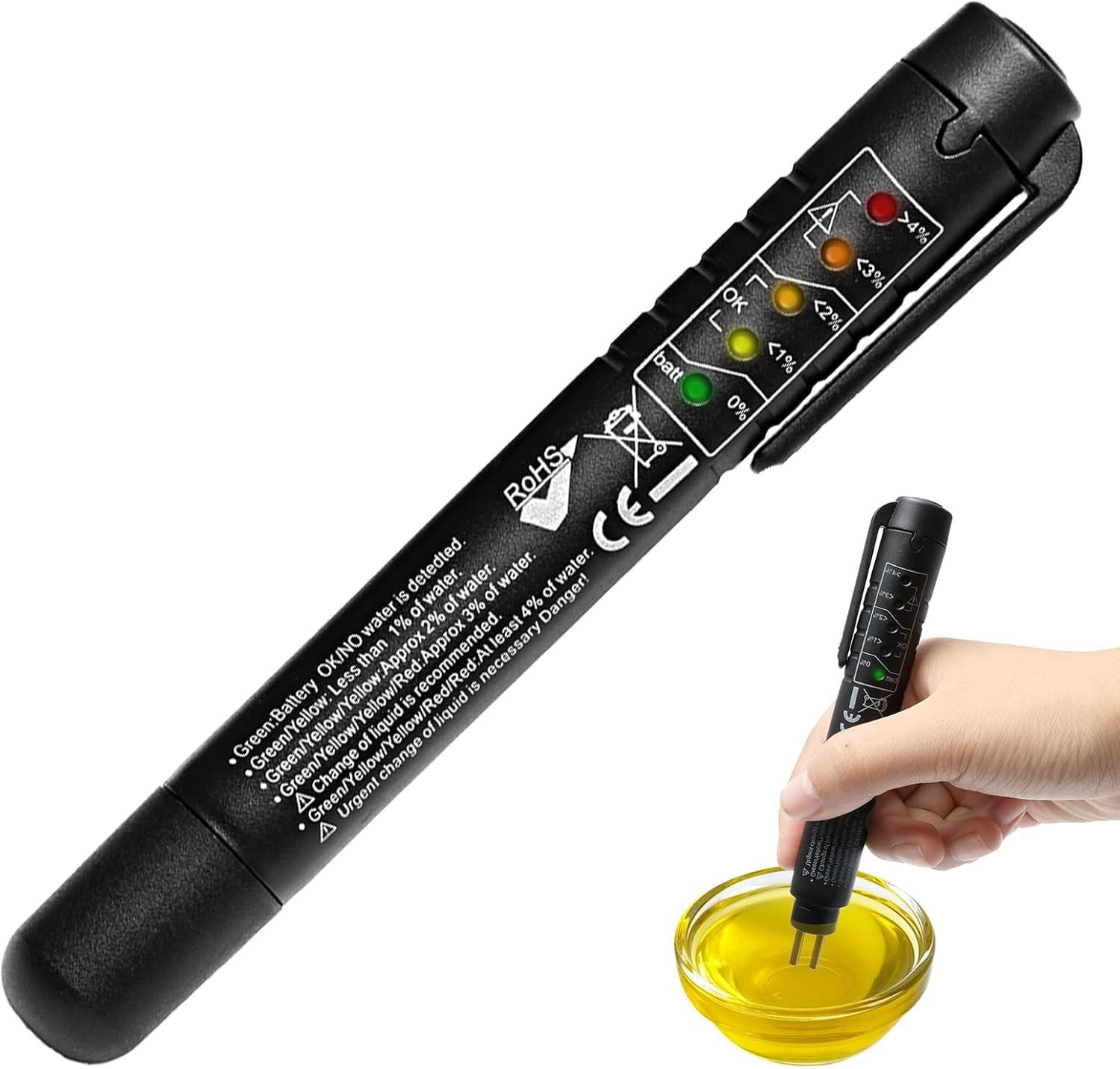 Automotive Brake Fluid Tester Oil Moisture Water Detection with High-Precision Probe LED Indicator
