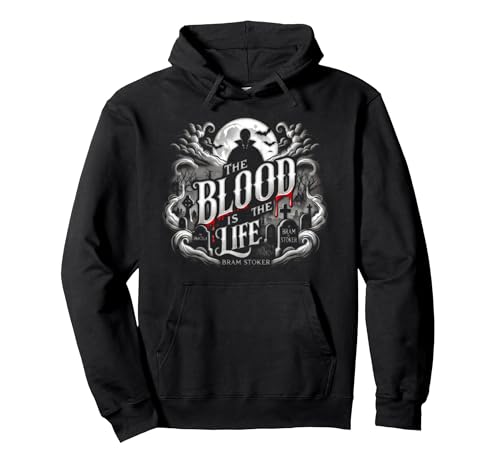 The Blood Is the Life - Bram Stoker Vampire Dracula Quote Pullover Hoodie, Adult Unisex, Black, Medium