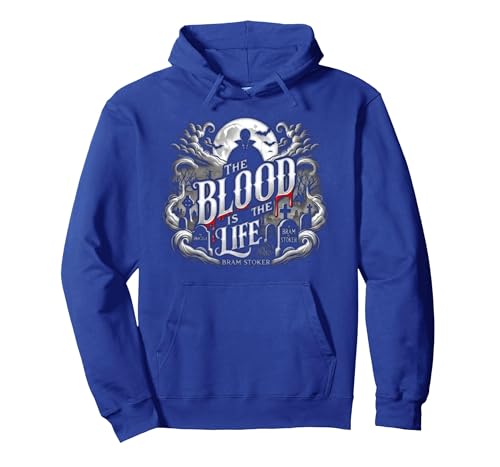 The Blood Is the Life - Bram Stoker Vampire Dracula Quote Pullover Hoodie, Adult Unisex, Royal Blue, Large