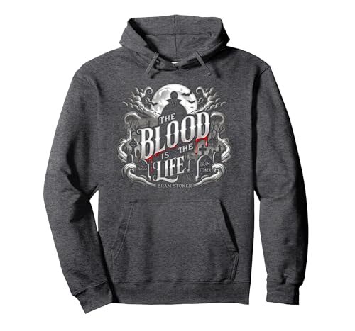 The Blood Is the Life - Bram Stoker Vampire Dracula Quote Pullover Hoodie, Adult Unisex, Dark Heather Grey, Large