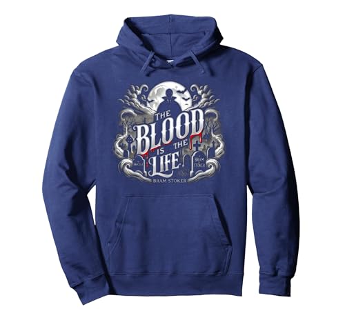The Blood Is the Life - Bram Stoker Vampire Dracula Quote Pullover Hoodie, Adult Unisex, Navy Blue, Large