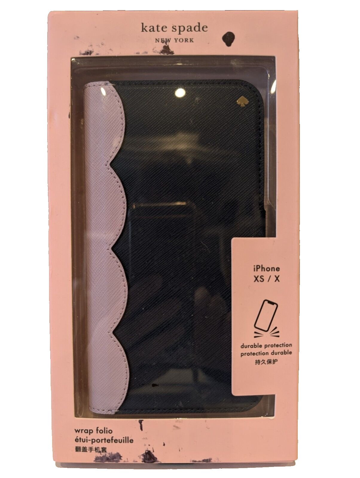 Kate Spade iPhone X / XS Wrap Folio Pink Black Scallop Phone Case Brand New